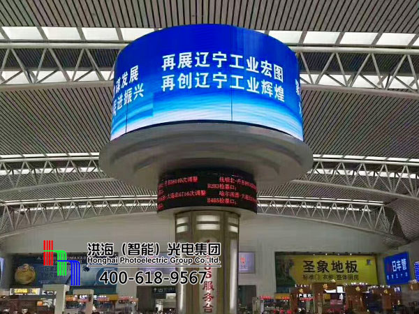 遼寧沈陽北高鐵站LED旋轉(zhuǎn)升降圓柱屏