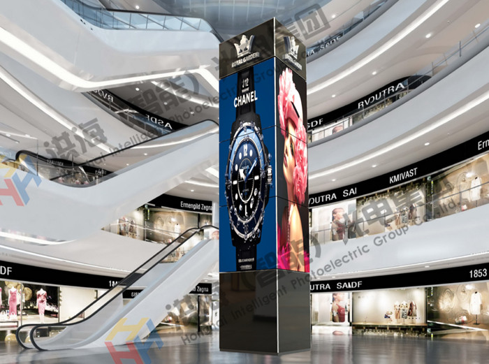 LED旋轉(zhuǎn)屏以靈活多變的旋轉(zhuǎn)姿態(tài)吸引著人們的注意,其結(jié)構(gòu)整體為三角柱體形狀,中間視頻顯示部分由三層三角形LED箱體構(gòu)成。在旋轉(zhuǎn)系統(tǒng)的控制下,三個led屏體相互配合,旋轉(zhuǎn)動作與視頻畫面協(xié)調(diào)運(yùn)作,三面共九個小led顯示屏可單獨(dú)播放視頻,也可拼接為三個視頻或?qū)⑷嫒龑覮ED拼接為一個整體視頻播放。動態(tài)屏幕與視頻畫面完美結(jié)合,為人們帶來震撼的視覺沖擊力,進(jìn)而促進(jìn)投放戶外廣告的有效傳播。