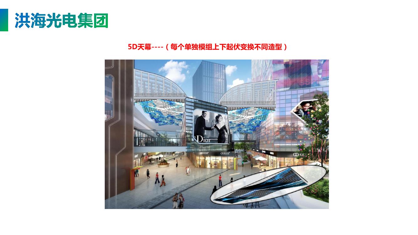 洪海LED天幕(彩色矩陣天幕)以其弧形式的設(shè)計(jì)占據(jù)整片外墻,蜿蜒起伏,白天具有很好的格柵裝飾效果,到了傍晚LED點(diǎn)亮,以其磅礴的視頻展現(xiàn)多彩的世界,在渲染商業(yè)地產(chǎn)氛圍的同時(shí),聚集人氣提高商業(yè)地產(chǎn)的價(jià)值。